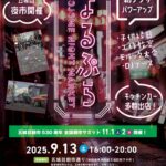 - よるぷら20259月13日(土)16:00~20:00 五城目町朝市通りでは、朝市プラスのにぎわいをさらにパワーアップ!飲んで… 続きを読む: よるぷら2025